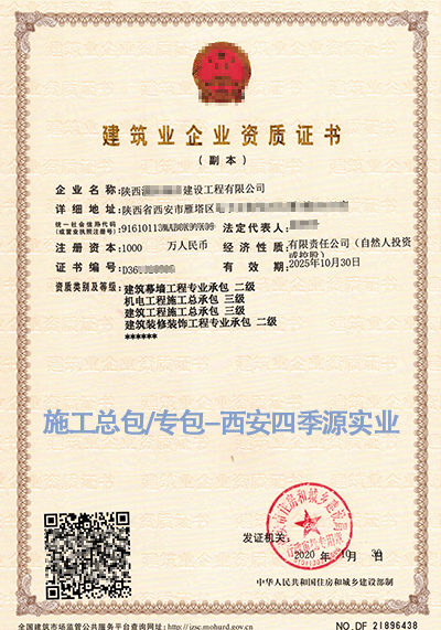 • 西安四季源實(shí)業(yè)專業(yè)代辦建筑資質(zhì),升級 增項(xiàng) 延期